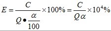 ①,式中E是篩選效率(%),C是篩下產品重量,Q是入篩原物料重量,α是入篩原物料中小于篩孔的級別的含量(%)。但實際生產中要測定C和Q是比較困難的,因此必須改用下面推導出的結果來進行計算: